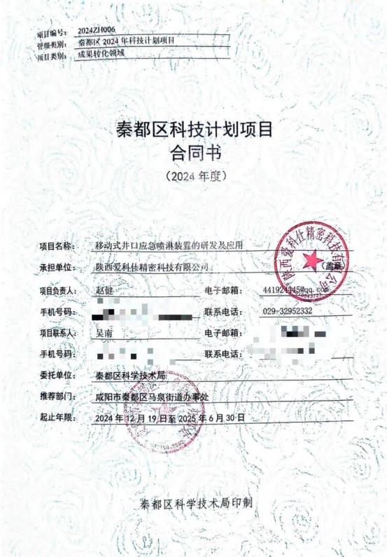 經(jīng)過公司科研團隊的辛勤努力與積極申報,愛科仕公司移動式井口應(yīng)急噴淋裝置的研發(fā)及應(yīng)用成功獲批咸陽市秦都區(qū)2024年科技計劃項目,并獲得2024年秦都區(qū)科技計劃項目成果轉(zhuǎn)化類經(jīng)費補助...